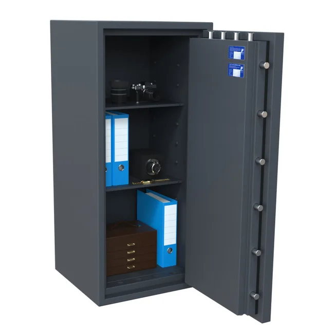 Coffre-fort certifié résistant à l’effraction selon la norme EN 1143-1 Classe IV et résistant au feu 30 minutes selon la norme EN 15659 LFS30P, le coffre Salvus Bergamo est idéal pour la protection de valeurs très importantes et documents confidentiels.